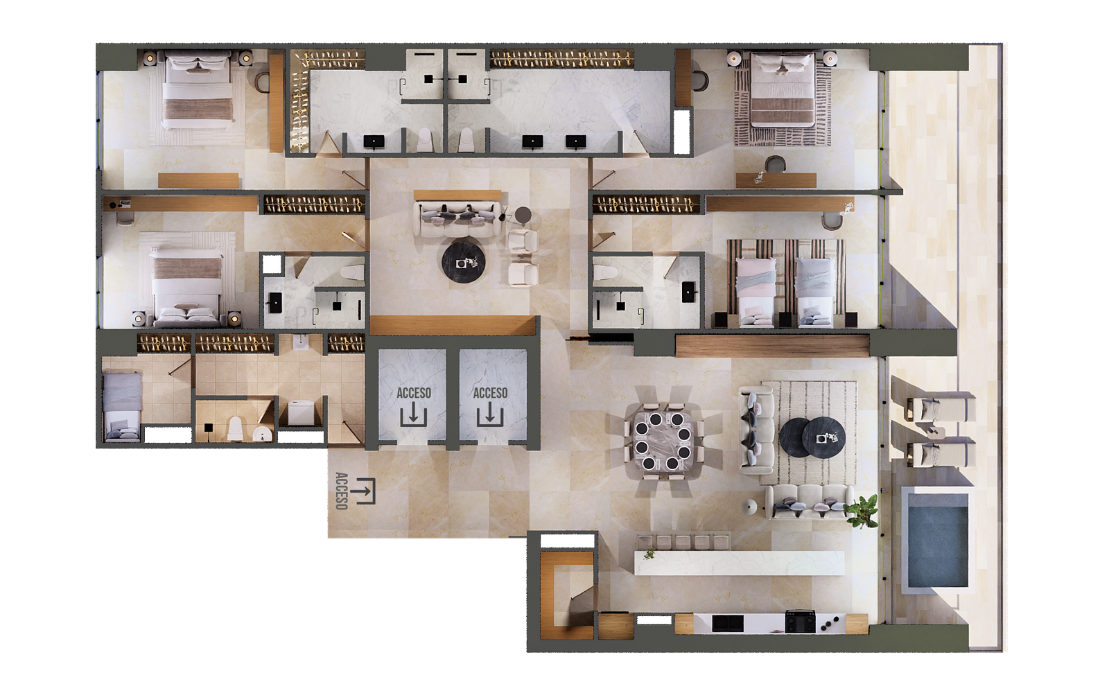 2, 3, 4, and 5-bedroom condominiums starting at $14,800,000 Mexican pesos with 200-degree views from every floor of both towers.
